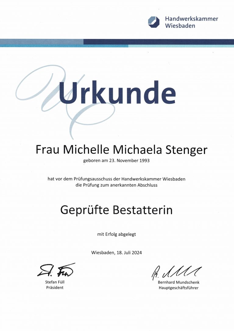 Gründerin Bestattungen Stenger in Aschaffenburg: Michelle Stenger